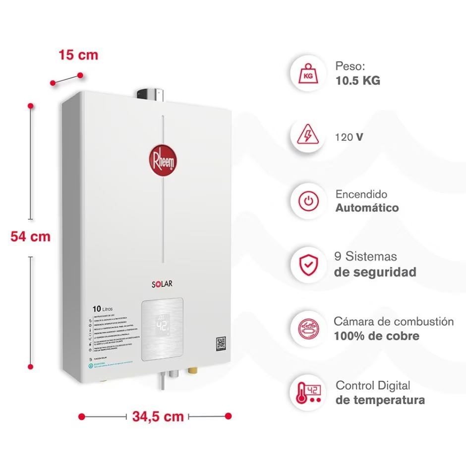 Calentador De Paso Tiro Forzado 10 Lt Digital Marca Rheem
