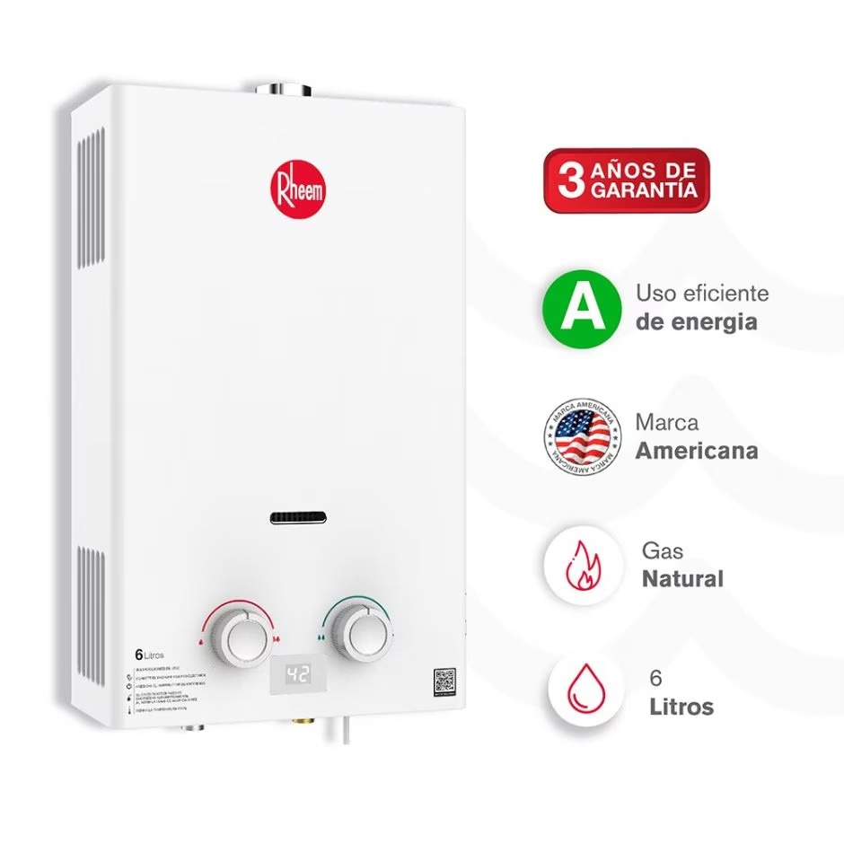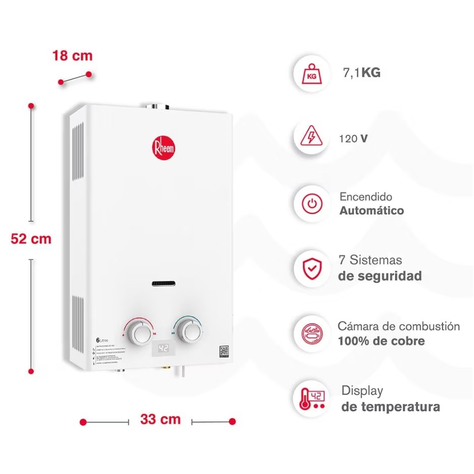 Calentador De Paso Tiro Forzado 6 Lt Rheem Mecánico